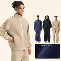 340G çizgili katı rahat Zip-up standı yaka ceket erkekler için Trendy marka kolej tarzı erkek giyim ceket