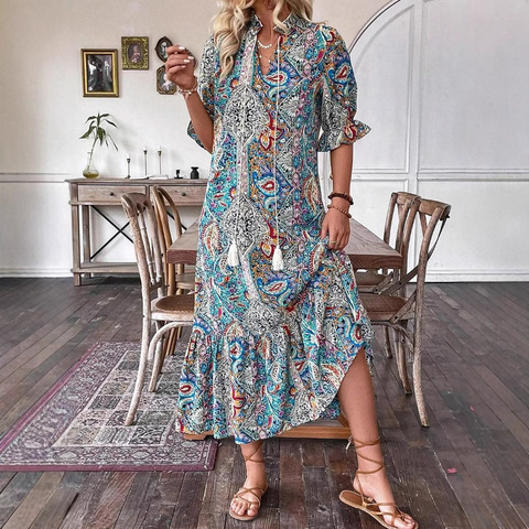 2025 kadın bahar yaz rahat tatil dokuma şifon dijital baskı çiçek baskı bohem tarzı Maxi elbise