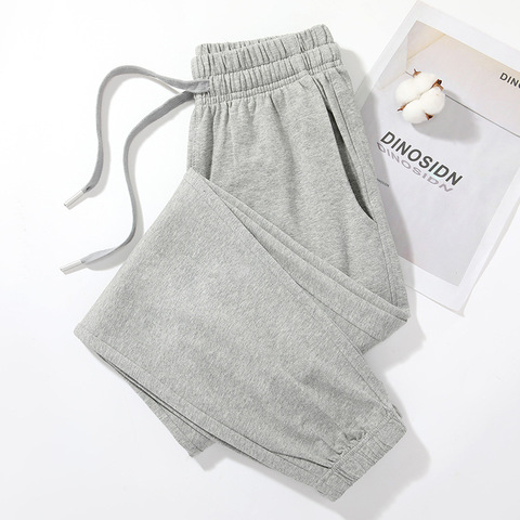 Yüksek kalite sonbahar kadın koşucu pantolonu Petite gevşek Harem spor rahat nefes elastik bel ince pamuk