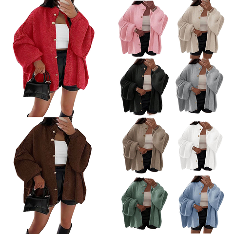 Abrigo de punto de un solo pecho para mujer elegante americana Europea Otoño Invierno Casual cárdigan de manga larga Color sólido