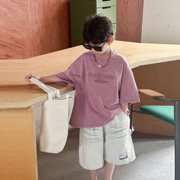2025 garçons été nouveau T-Shirt Kidsren's décontracté coton à manches courtes haut tissé vêtements avec motif de Logo imprimé