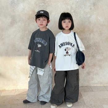 2025 été ample enfants t-shirts hauts nouveau Style coréen dessin animé imprimé décontracté à manches courtes hauts pour garçons filles doux