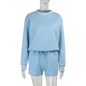 All'ingrosso completo tuta da donna senza cappuccio a manica lunga felpa con pantaloncini Casual in pile abbigliamento sportivo